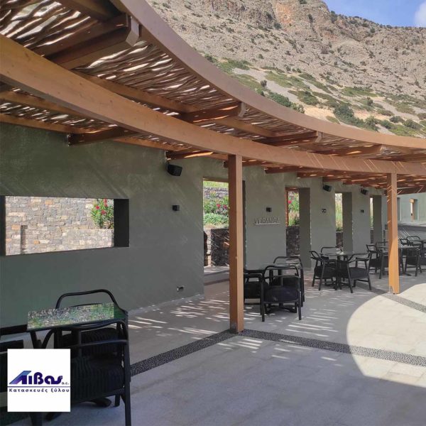 Keine Terrasse ohne Pergola: Zum Schutz gegen die starke Sonne setzen Restaurants, Bars, Ferienanlagen und Hotels in Griechenland überall großflächige Schattenspender ein…