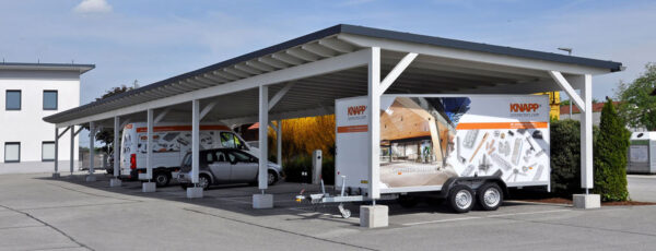 Knapp Verbinder hat 16 Mitarbeiterparkplätze mit einem Carport überbaut – und demonstriert dabei die Einsatzmöglichkeiten seiner Verbinderpalette.