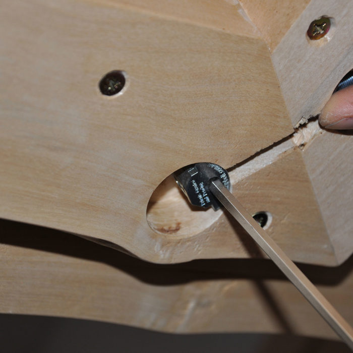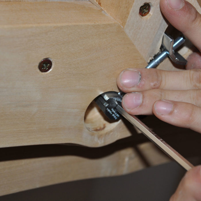 Knapp Connectors used the wood from a felled birch tree to make a table for the company’s social space. The legs and top were made from the trunk. The connectors ZIPBOLT™ 100 Mini Ultra Slim served to assemble the wooden-framed table. The system fits into a groove of only 10 mm deep. For the assembly, the connectors are installed and secured easily with a TX25 Allen key.
