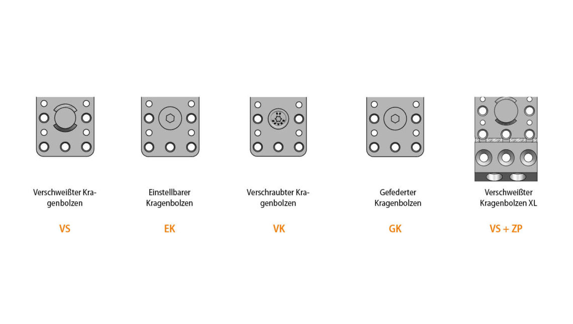 The „welded collar bolt“ covers 90% of applications and even an XL variant is available. For projects with lower load capacities, the „screwed collar bolt“ is the cost-effective choice.