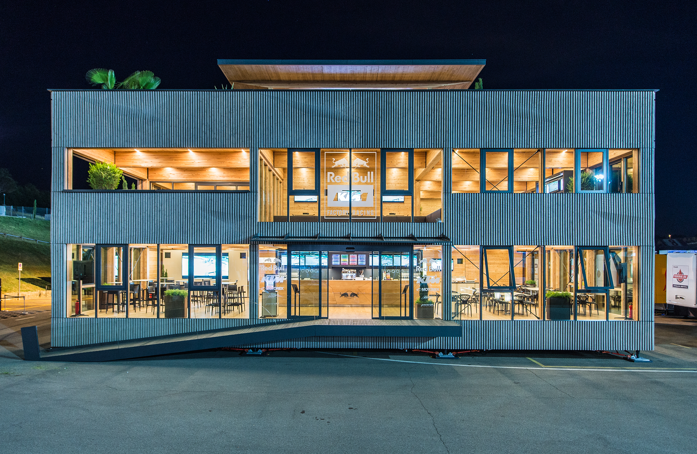 More than 3 stories and 600 m² timber building with a sun terrace offers space for teams and visitors. It was made using RICON® S connectors. The WALCO® V connectors were also used to make a facade demountable in a quick and simple way. In all 6 races throughout Europe, a quick assembly and disassembly of the Red Bull KTM Factory Racing Hospitality Station was made possible, all because of the KNAPP connectors.
