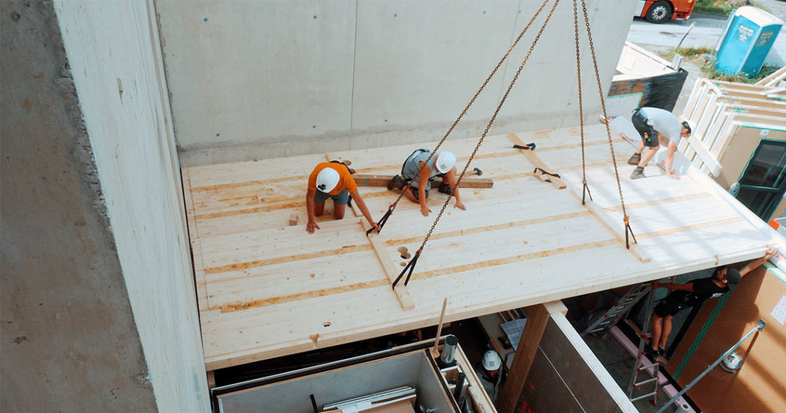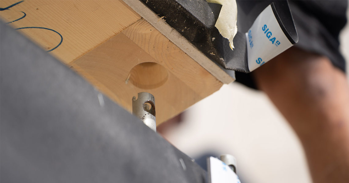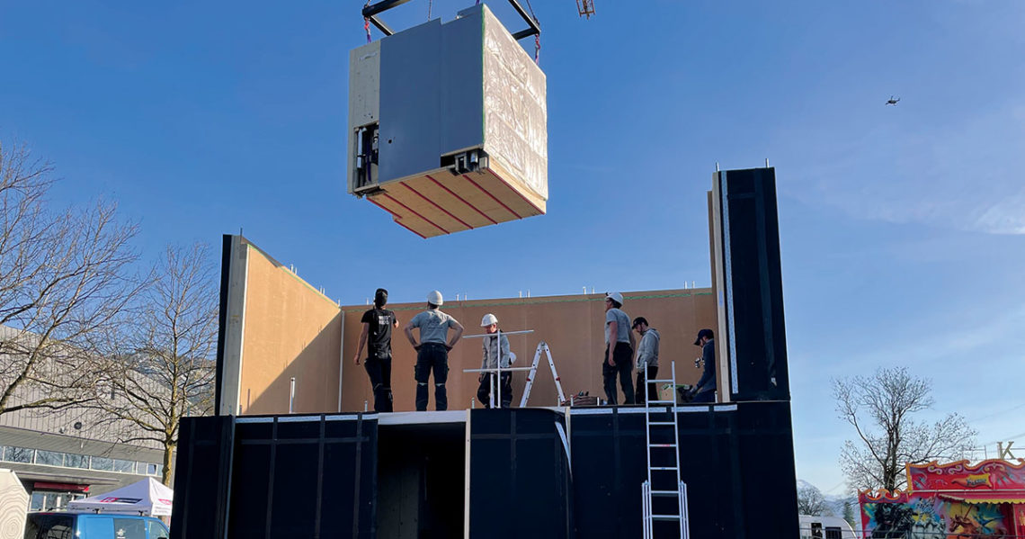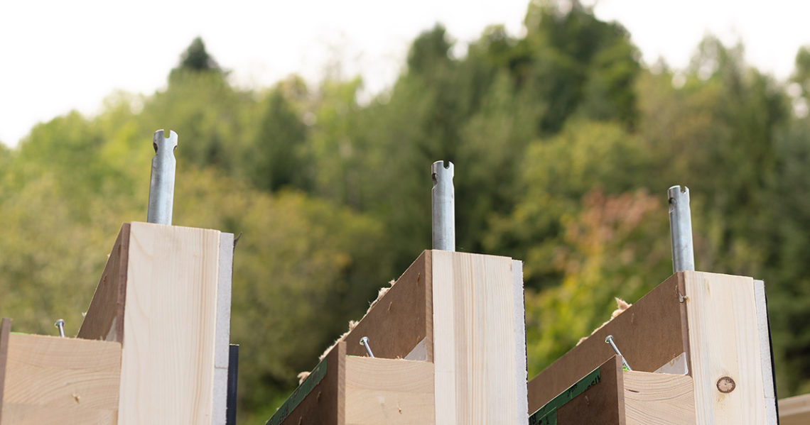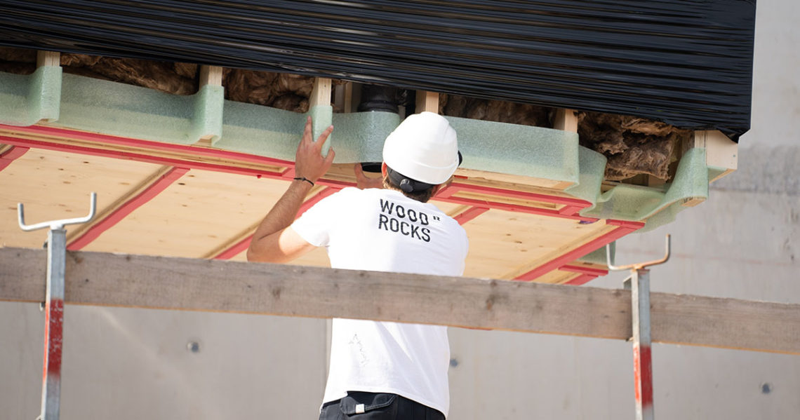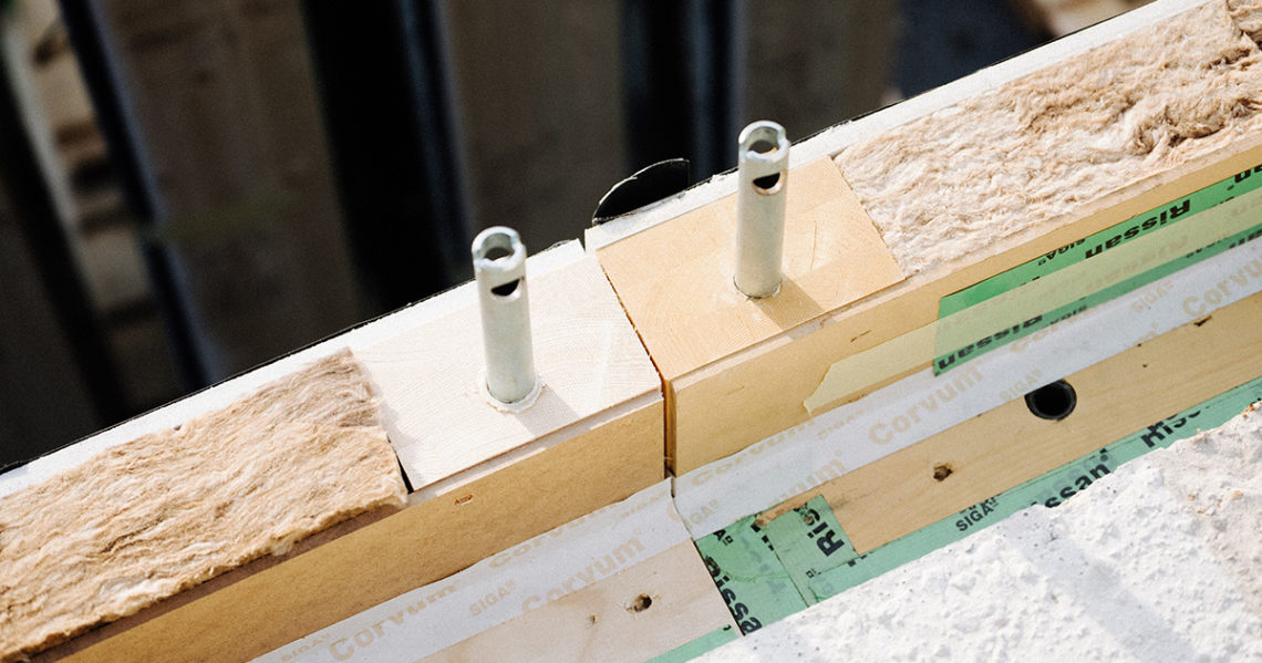 The company, WoodRocks assembles a small cluster module of homes with the WALCO Pipe connector, conceived by Knapp for this very purpose. The connector enables a connection of the ceiling with the floor of the modules invisibly, safely, and precisely.
