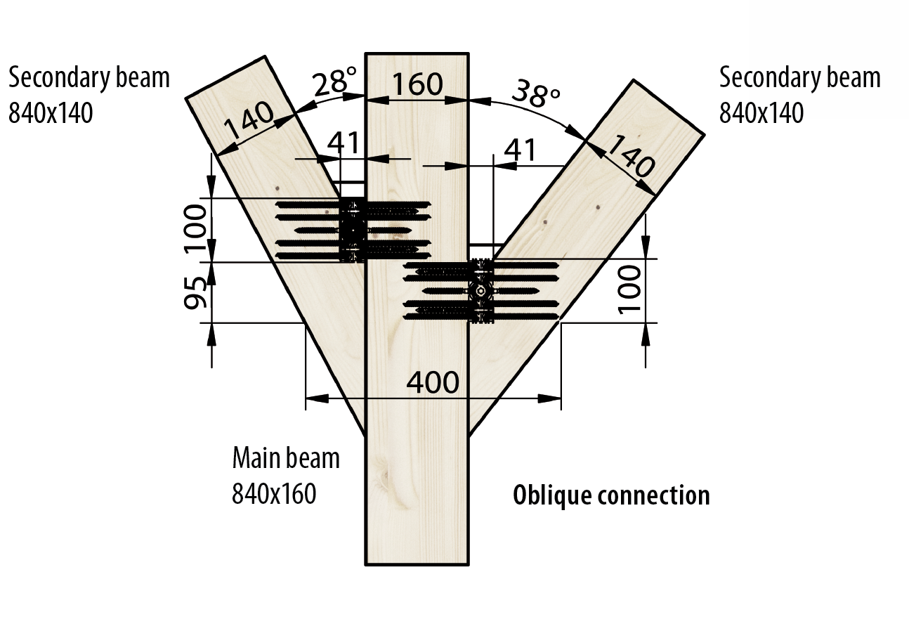 With its standard sizes, the MEGANT® connecting system covers beam widths from 100 mm with a 633 kN load capacity, requiring only 2 cm hook way. The RICON®S system offers up to 116 kN load capacity with only 3.5 cm hook way. Both connection systems are used for main and secondary beam joints and can also join timber to steel or concrete. Being pre-engineered the MEGANT® and RICON® S offer a high degree of prefabrication and allow a smooth and quick installation without the danger of jamming during insertion.