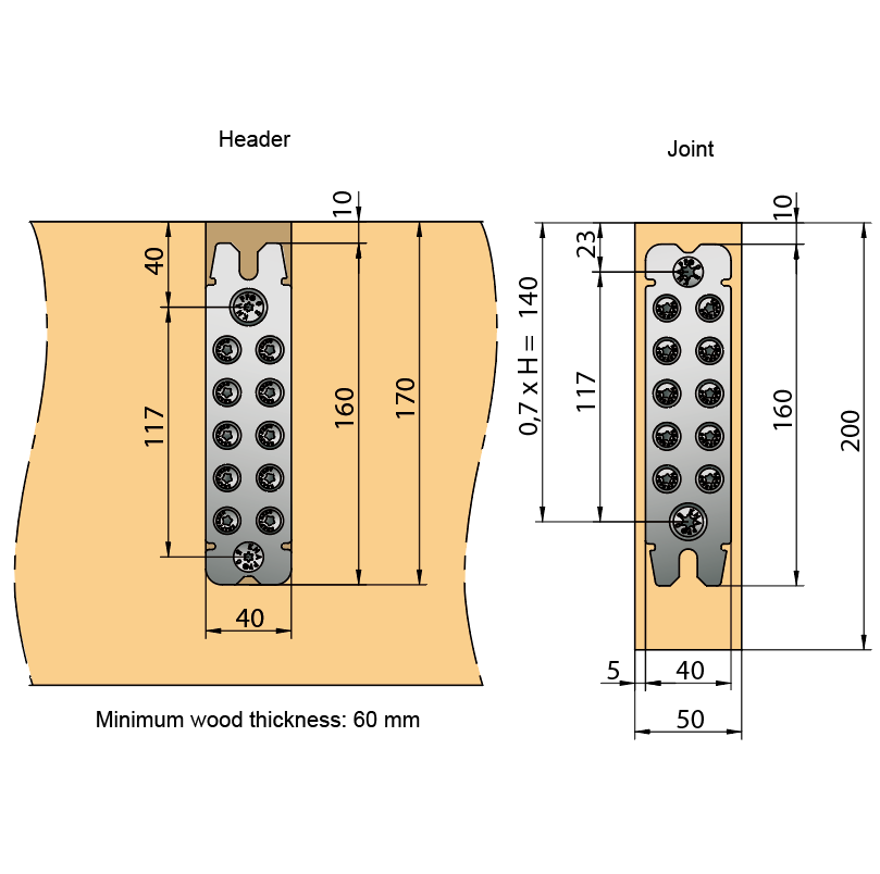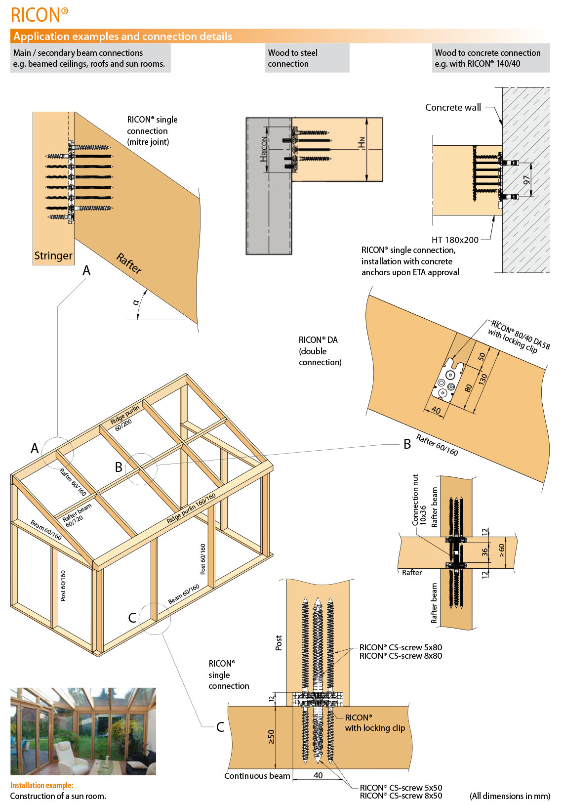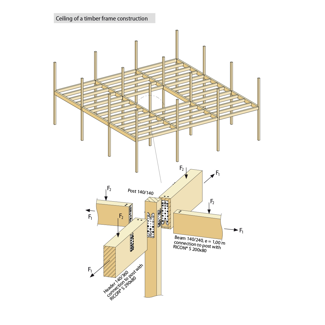 The RICON® S – System holds up to 230 kN and can be used for joints from timber to timber, steel, and concrete. The connectors can be installed fully concealed or visible with only 35mm (1 1/2″) of travel required to engage. The RICON® Connecting System is a unique connector for main and secondary beam joints and can be installed on beams with a width as little as 50mm. The GIGANT Connecting System was the first connector to be installed with screws in a perpendicular direction in the end grain and revolutionized the timber industry.