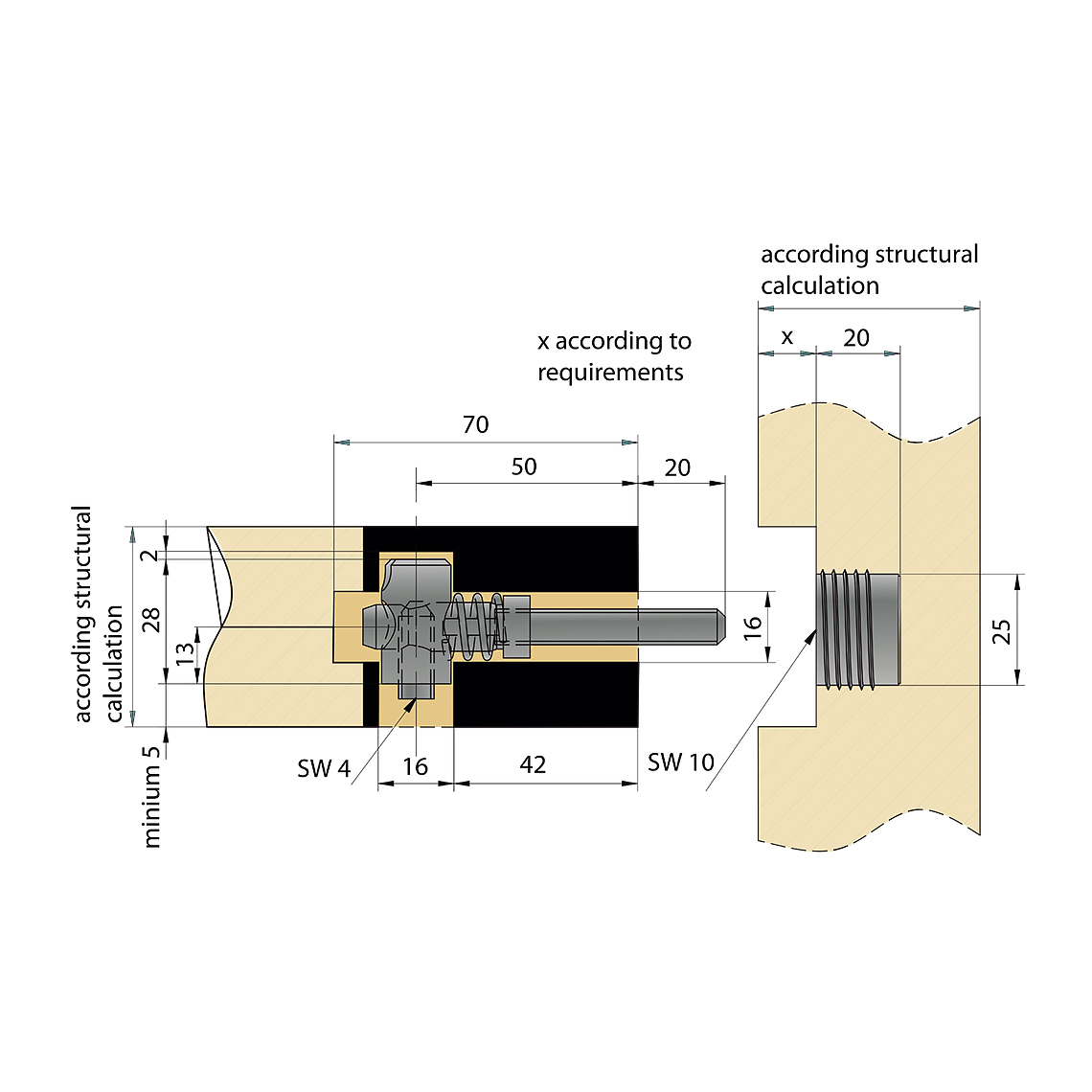 easy-con® Tension element for stair tread mounting und table legs