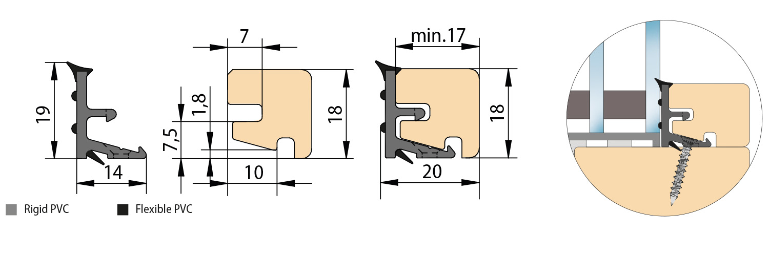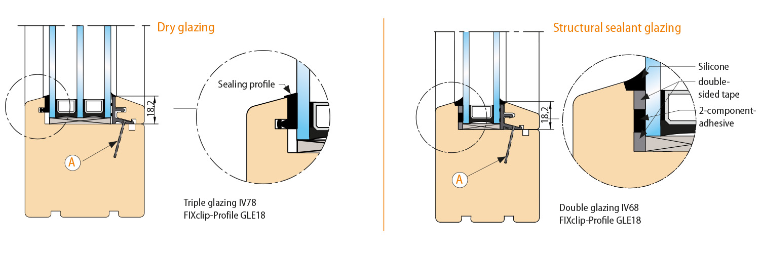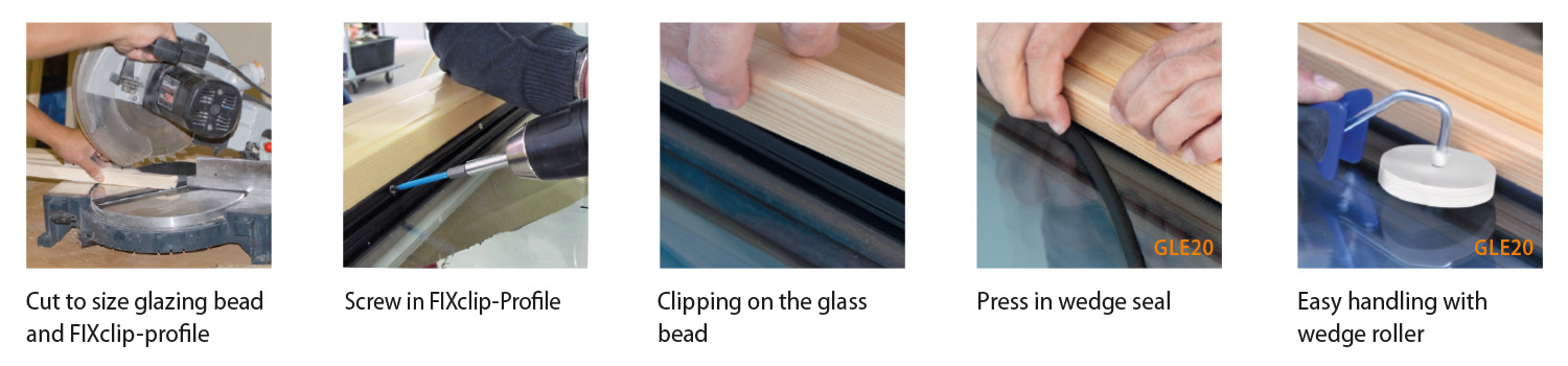 The FIXclip- Profile is made of UV and weather-resistant plastic and is available in five versions GLE 17, GLE 18, GLE 20 or GLE 17, and GLE 20 Plus with a separate wedge seal.