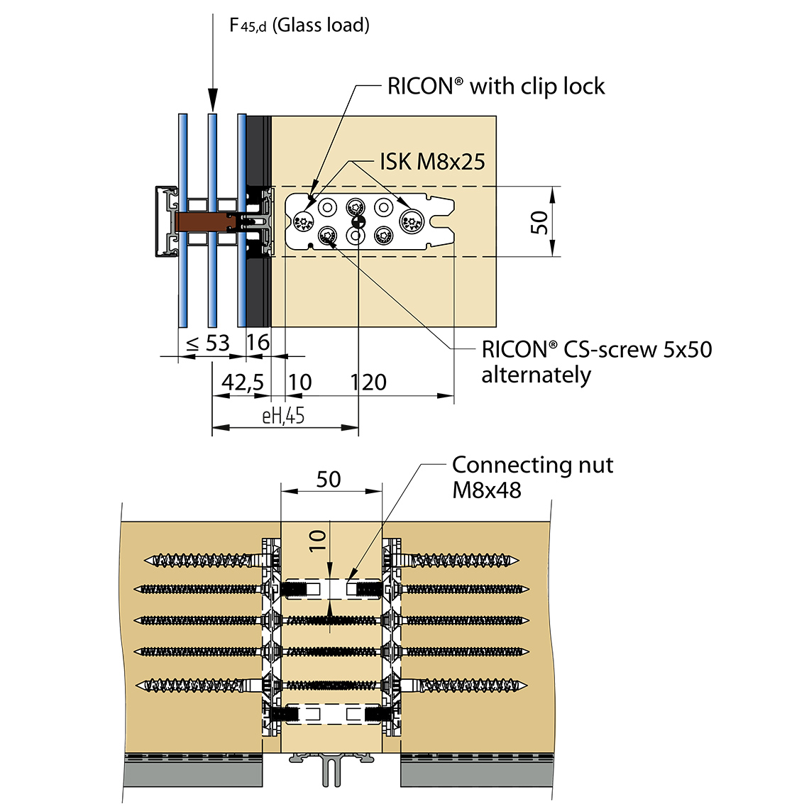 RICON® | The connector for Post-Beam Wood-Glass-Facade up to 26 kN