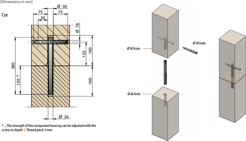 - Stable and concealed connection for prefa. wall elements made of wood, CLT, or similar materials