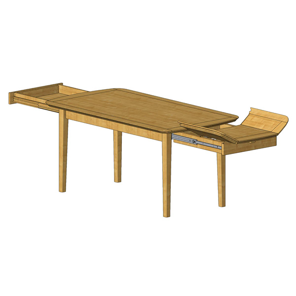 Avec sa pièce de maitrise, le menuisier Phillip Strigel a créé une table qui sort de l’ordinaire : à un bout, se trouve un tiroir et à l’opposé se cache un mécanisme avec une rallonge qui se déplie en un tour de main…