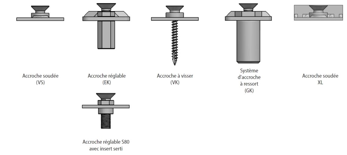 Pour les assemblages moins sollicités en termes de charge, la version avec accroches à visser est l’option la plus économique.