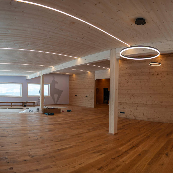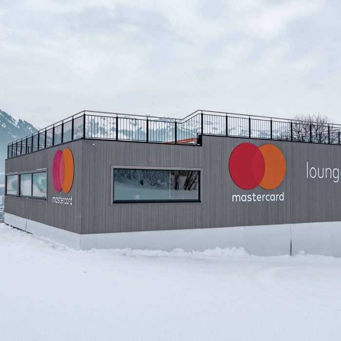 C’est là que le bâtiment en bois polyvalent a été inauguré en tant que salon événementiel Mastercard et a permis aux invités VIP amateurs de sport de vivre la descente et le Super G d’aussi près que rarement auparavant.