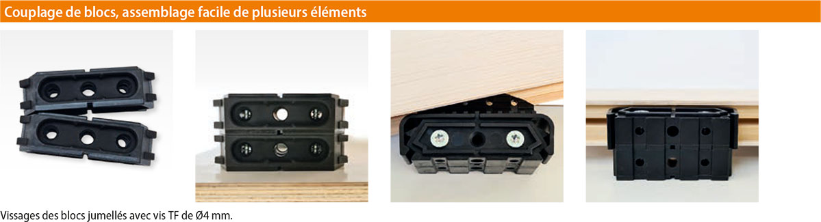 Il est possible de juxtaposer les clips et blocs DEKLICK® pour augmenter la tenue.