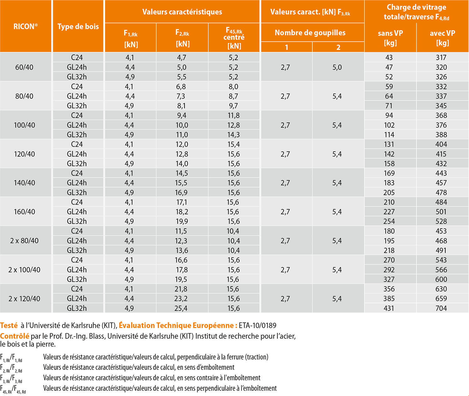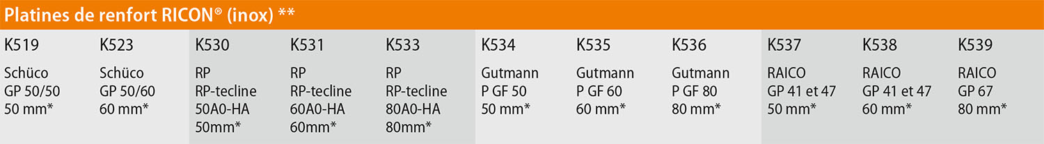 Les platines de renfort complémentent les assemblages réalisés avec les connecteurs RICON, elles permettent d’améliorer sensiblement les capacités de charge de vitrage (jusqu’à 700 Kg) sur les traverses bois de murs rideaux.