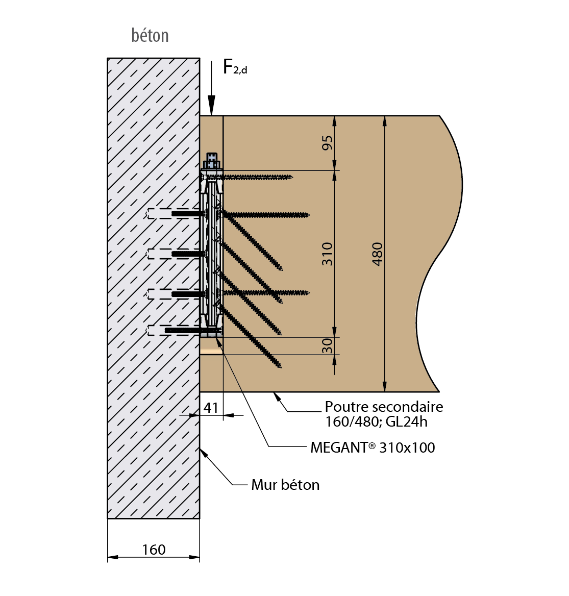 Le connecteur pour poutres principales et secondaires MEGANT® se compose de deux plaques d’assemblage identiques avec des mâchoires de formes coniques en aluminium de classe AW 6082 qui s’emboîtent avec la liaison de tiges filetées. Ce type de connecteur est mis en œuvre pour la réalisation d’assemblages invisibles pour des sections à partir de 100 mm et jusqu’à des sollicitations à la charges de 768 kN. MEGANT® est disponible en 11 versions standard, en 3 largeurs et longueurs différentes. Des dimensions spéciales sont possibles sur demande.