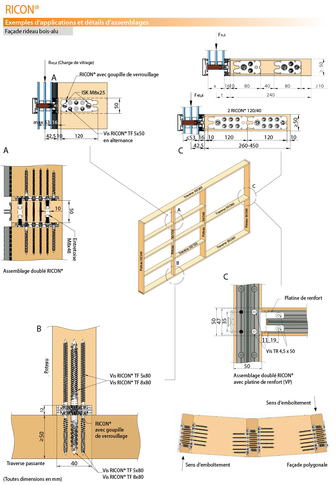 Les connecteurs RICON® s’utilisent pour des assemblages poteaux-traverses sur façades rideaux avec charges décentrées jusqu’à 860 kg. Ils sont aussi idéals pour la réalisation de façades polygonales, de verrières, de vérandas, pergolas auvents et de structure bois. Les connecteurs permettent une préfabrication maximum et un temps de montage minime sur chantier. Ils apportent une grande sécurité aux bureaux d’études, architectes, fabricants et maitres d’œuvre, ils disposent de l’Agrément Technique européen (ETA), du marquage CE et font l’objet de contrôles externes et internes réguliers.