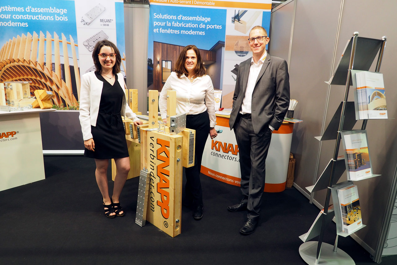 Bei der Fachmesse Carrefour in Nantes (FR) für Holz in der alle Holzprodukte vom Schnittholz, Fassaden, Brettschichtholz, Verkleidungen, Bodenbelägen wurden erstmals die Verbindungssysteme für den Holzbau von Knapp präsentiert.