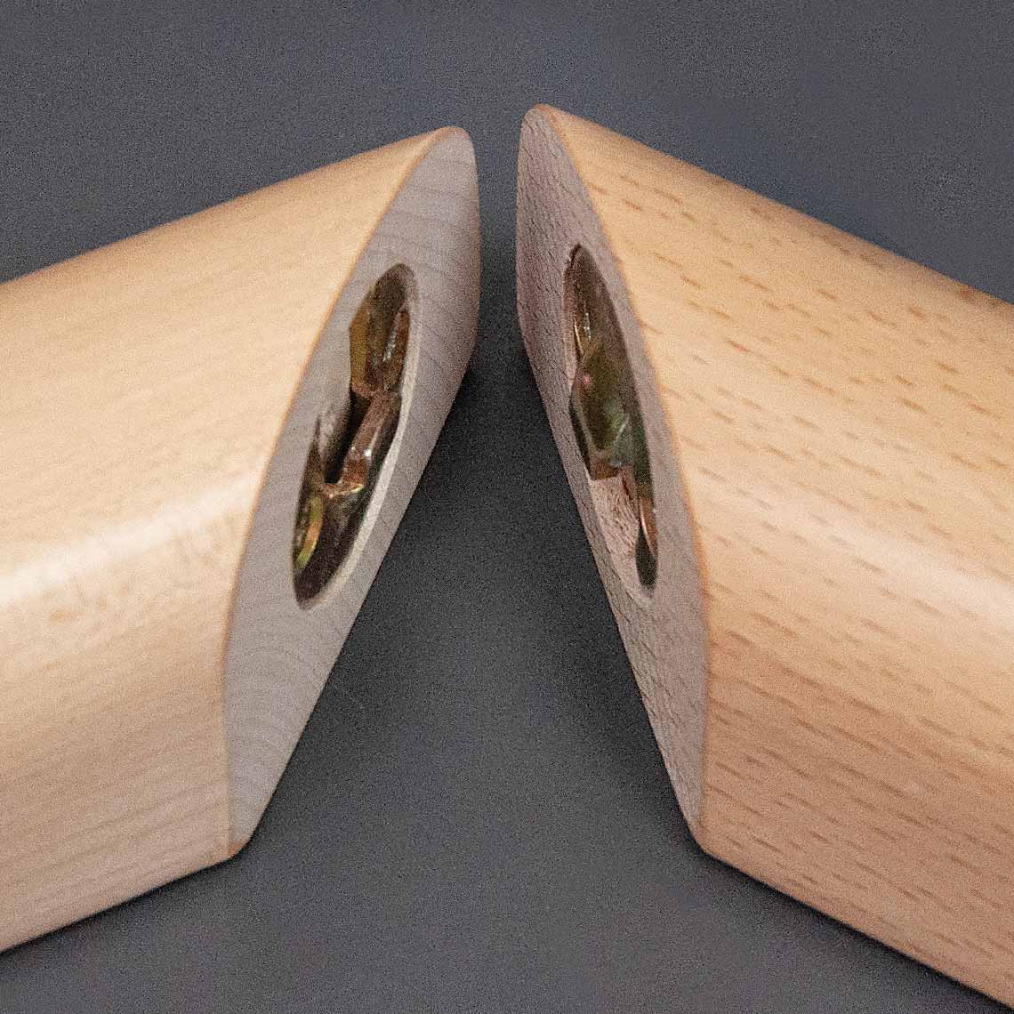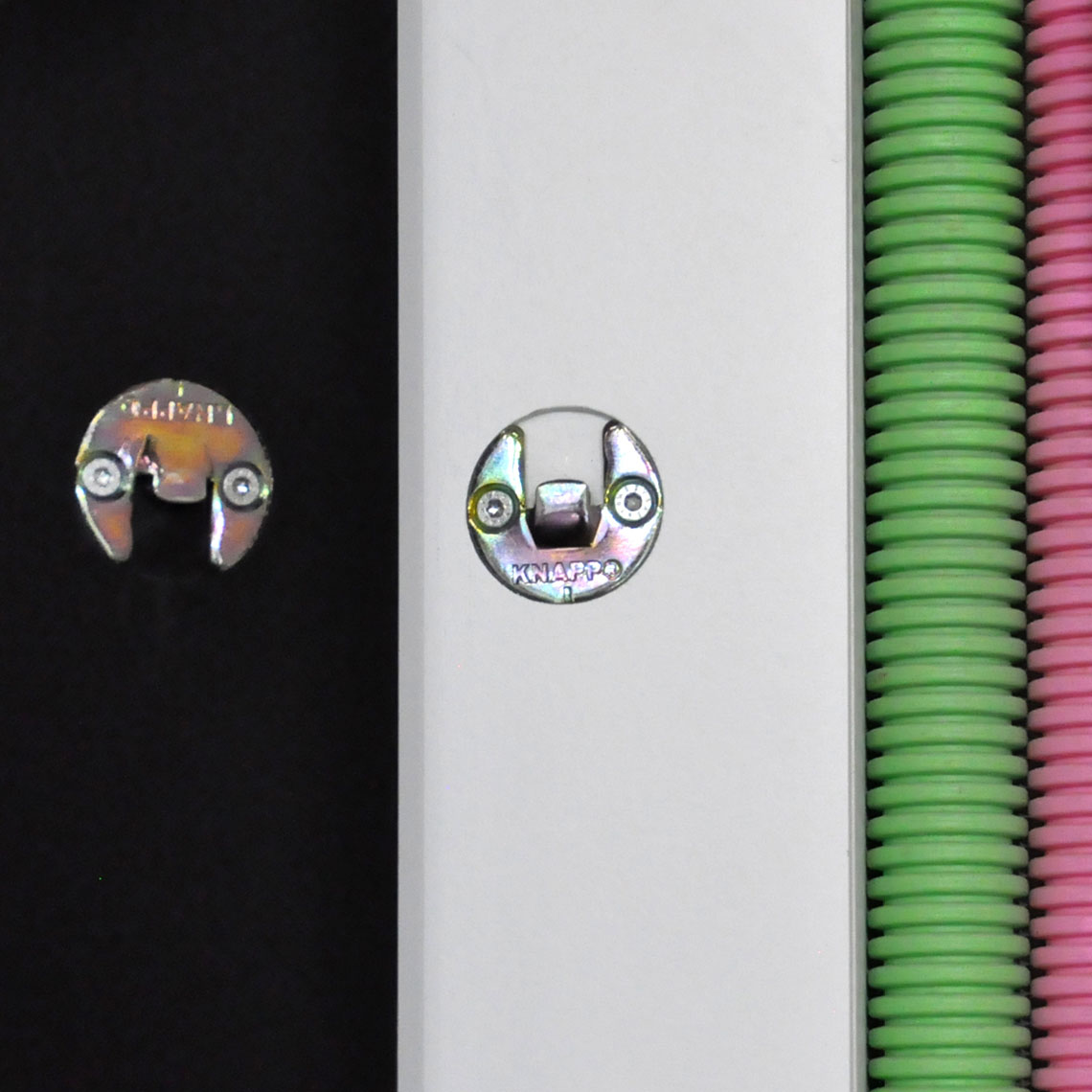 Die DUO 30 und 35 Verbinder bestehen aus zwei gleich großen Stahlteilen die durch ihre Konstruktion ineinander greifen. Sie bilden einen sehr stabilen Anschluss und die Werkstücke sind nach dem Anschrauben und Zusammenstecken der Teile sofort belastbar. Auf Grund seines Durchmessers ist das DUO 35-System, montiert mit der Euro-Schraube, ideal für die industrielle CNC-Verarbeitung sowie zum Koppeln von Fensterelementen vor Ort geeignet.