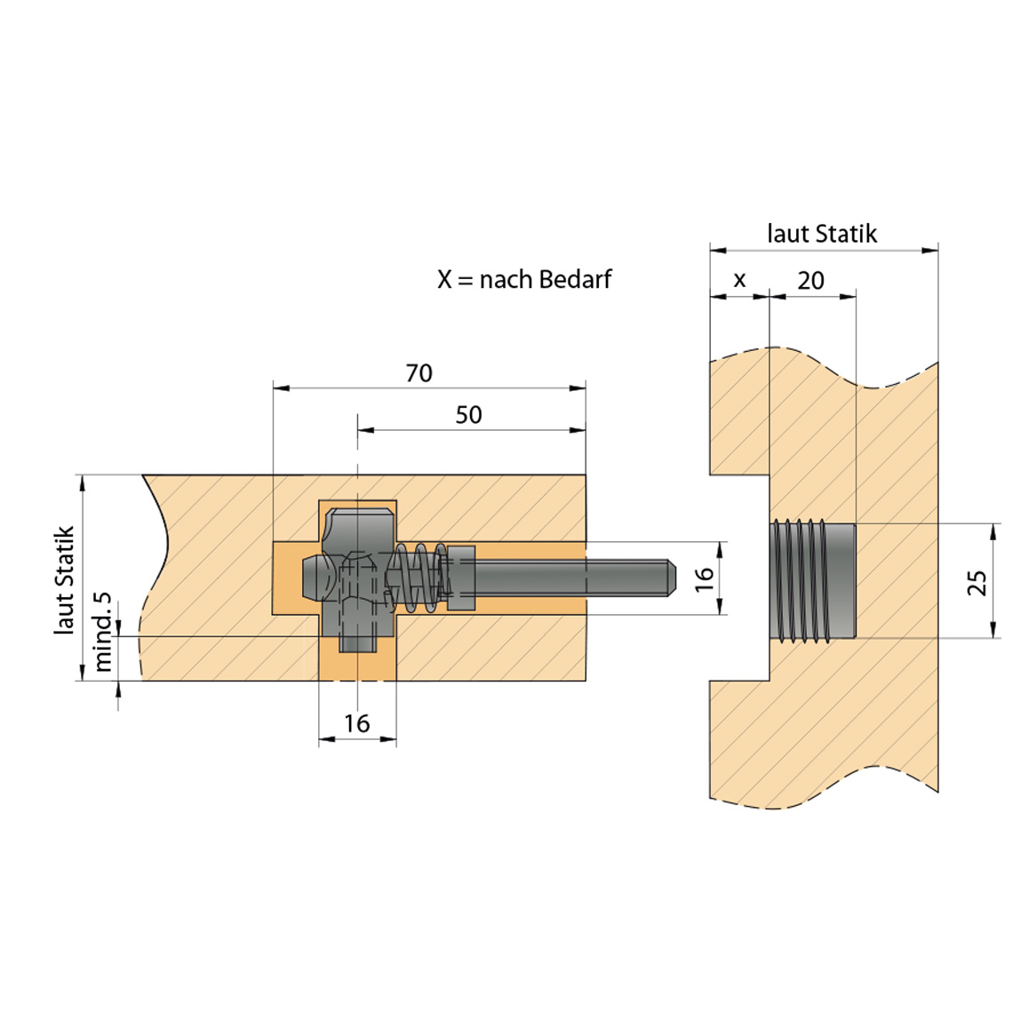 Montage – leichter Einbau, da der Zugbolzen in die Einschraubmuffe durch das einzigartige System ein- und nachrastet