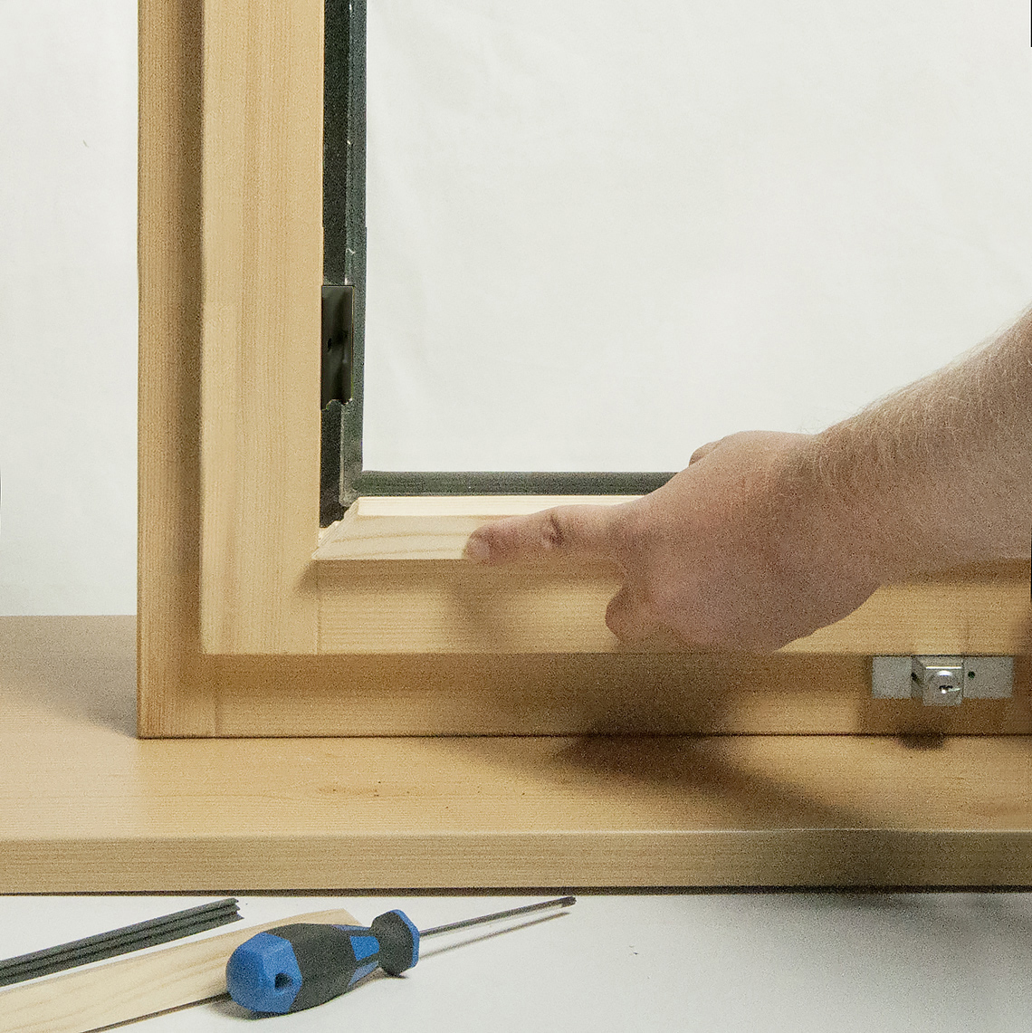 Glasleisten, Profilleisten aus Holz- oder Kunststoffmaterialien.