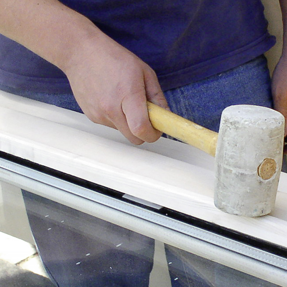 Verdeckte Montage von Glas und Profilleisten, beschädigungsfrei demontierbar, geprüft auf Windlast C5 (EN 12210) und Stoßfestigkeit Klasse 3 (EN 13049)