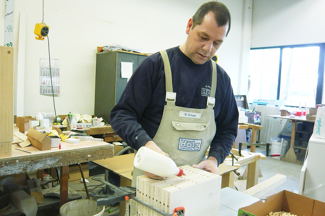 • Sauber – bei Dübel Automaten wird Weissleim (z.B. PVAc) empfohlen für leichtes und einfaches Reinigen der Maschinen.
