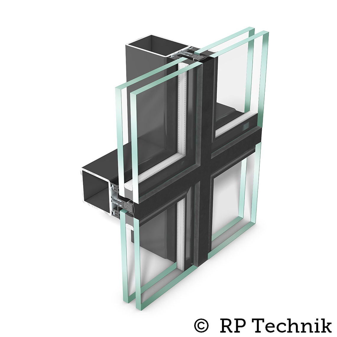 Die Verstärkungsplatten für den RICON ermöglichen Pfosten-Riegelverbindungen, die besonders starken Belastungen standhalten. Damit können bis zu 700 kg Glaslast übertragen werden. Sie