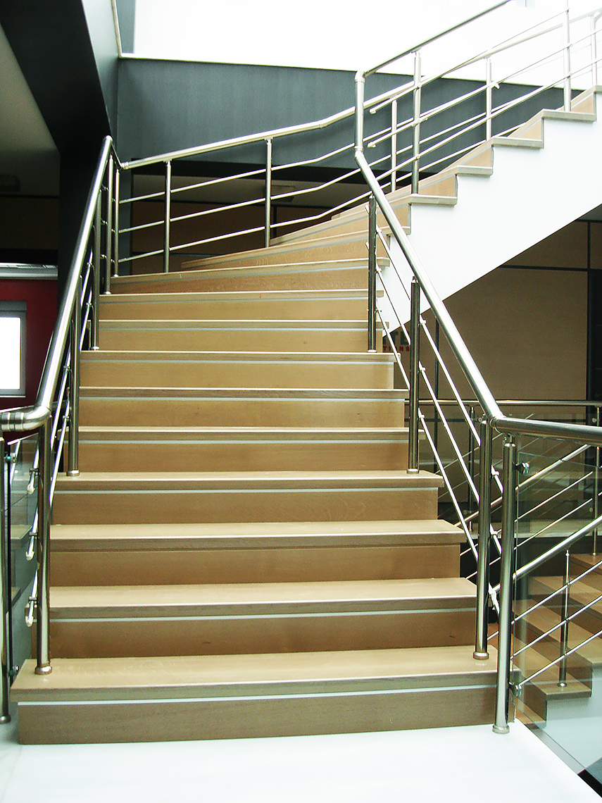 Das TREPPO-System ermöglicht eine rationelle Stufenmontage auf Beton. Mit der höhenverstellbaren Befestigungsschraube ist das exakte Ausgleichen von Höhendifferenzen einzelner Stufen von Betontreppen und ungenau geschalten Treppen möglich. Aufgesattelte Treppen, Setz- und Trittbrettkonstruktionen sind sehr rationell zu montieren, der Montageaufwand kann bei diesem einfach anzuwendenden System wesentlich reduziert werden. Das Montagesystem wird unsichtbar montiert und erfüllt damit höchste Ansprüche an die Verarbeitung und Optik.