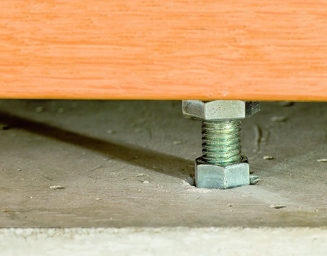 Höhenverstellbare Befestigungsschraube für Trittstufen zum Ausgleich von Höhendifferenzen bei geschalten Betonstufen