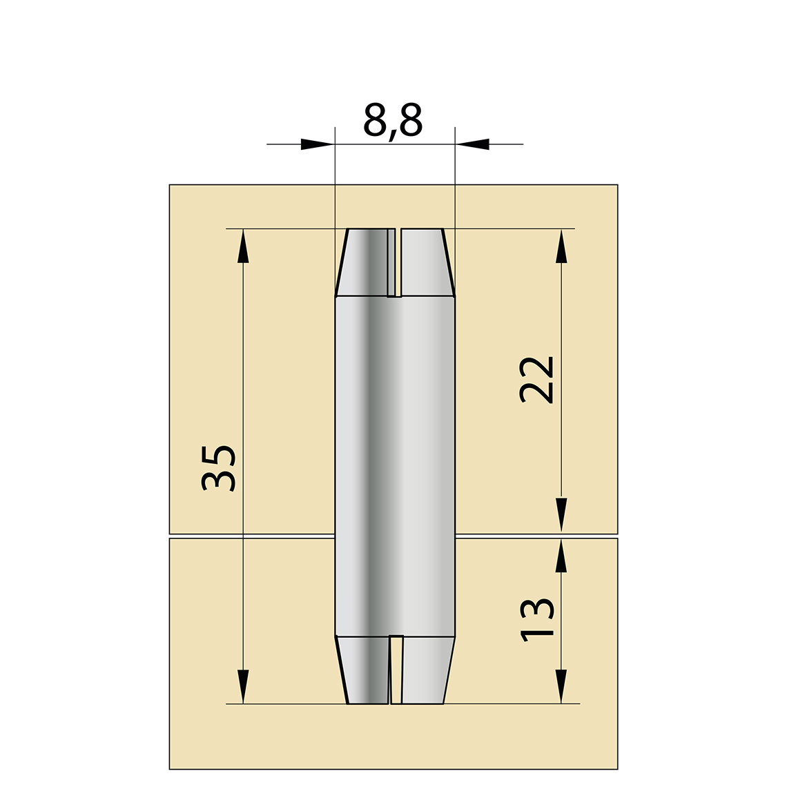 Der TUCK ist ein Federstahldübel. Er ist in fünf Größen (Ø 6 mm x 25 mm; Ø  8 mm x 35 mm;  Ø 10 mm x 32 mm;  Ø 10 mm x 28 mm und   Ø  10 mm x 16 mm) erhältlich und wird ,  wie ein konventioneller Holzdübel verarbeitet. Zur Verleimung von Teilen mit dem TUCK werden jedoch keine Zwingen, Korpuspressen oder Ähnliches mehr benötigt, da er wie alle Knapp-Verbinder selbstspannend ist. Der Federstahl garantiert eine dauerhafte Spannung. Die Verarbeitung kann mit einer Dübelbohrmaschine oder mittels CNC Bearbeitungszentrum erfolgen. Durch den Entfall der üblichen Spannhilfen kann die Produktivität bei der Verleimung auch in kleinen Betrieben drastisch gesteigert werden, es können beliebige Stückzahlen gefertigt werden, ohne dass es zu Engpässen wegen fehlender Zwingen kommt. In der  industriellen Möbelfertigung können die Taktzeit erheblich gesenkt werden.