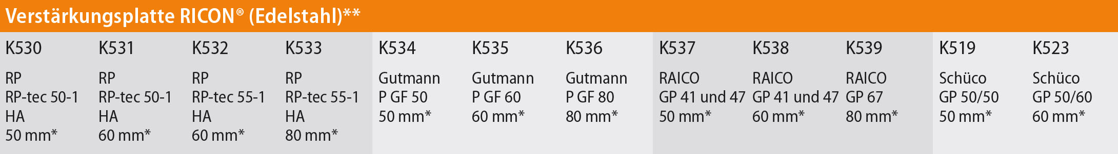 ** Alle Verstärkungsplatten sind bauaufsichtlich für alle gängigen System zugelassen.