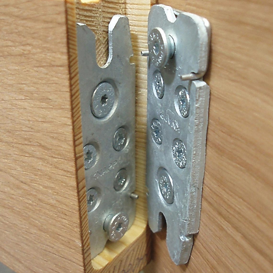 • bessere Grifffestigkeit auf dem Holz mittels sternförmiger Prägung auf der Rückseite des Verbinders