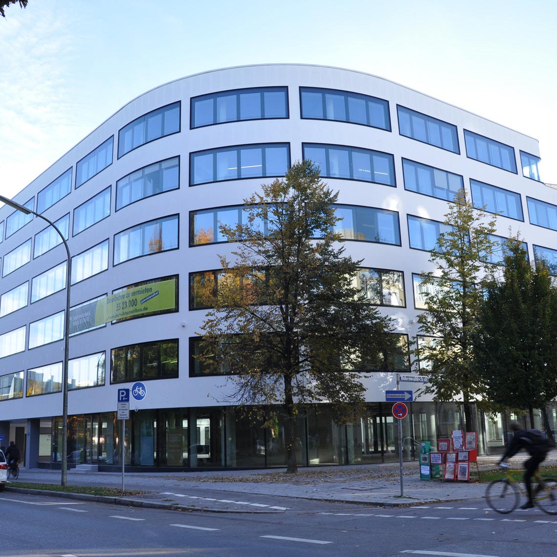 Details: Das Büro- und Geschäftsgebäude Sunyard liegt im Herzen von Obersendling. Auf rund 26.500 m“ entstehen hier moderne Büroflächen mit variablen Grundrissen, ergänzt um attraktive Ladenflächen im Erdgeschoß Bereich. Die Innenhöfe werden für den Publikumsverkehr geöffnet. Eine neue, diagonale Direktverbindung zwischen Hohenwaldeckstrasse und der S-Bahn Haltestelle St. Martin-Straße steigert die Attraktivität für Fußgänger und bietet unmittelbaren Zugang zur Erdgeschoßebene. Im charakteristischen Rundbau an der Ecke St.-Martin-Strasse / Hohenwaldeckstrasse ergänzt ein offenes Cafe das Ladenangebot.