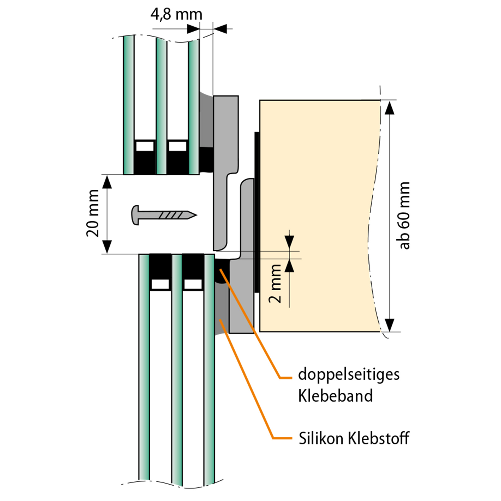 • Zulassung für außermittige Glaslasten bis 700 kg mittels einer zusätzlichen Verstärkungsplatte