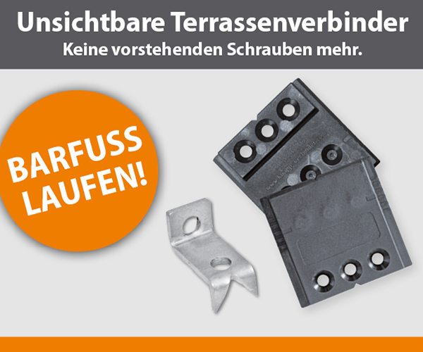 Barfuß laufen über makellose Dielen mit unsichtbar montierten Verbindern! Anspruchsvolle Kunden wünschen sich Alternativen zu herkömmlichen Standardterrassen.