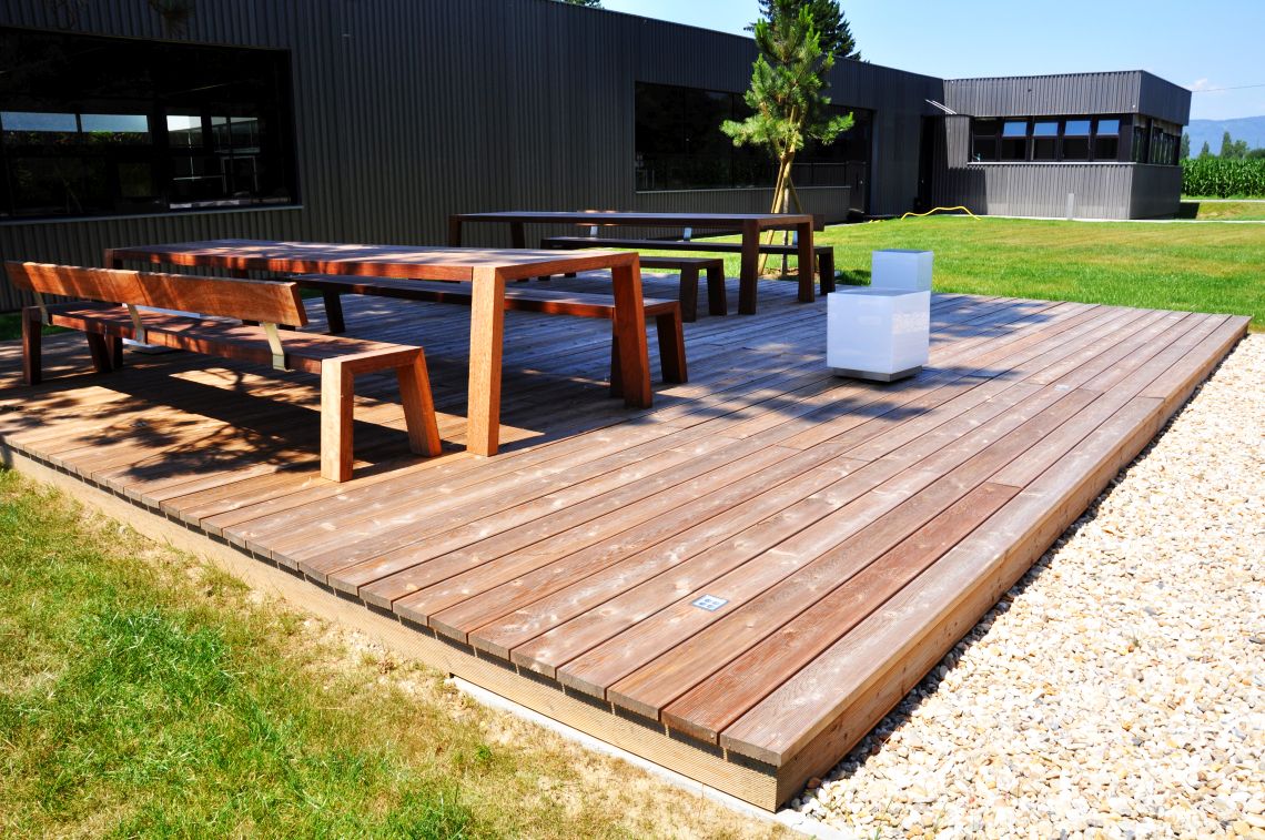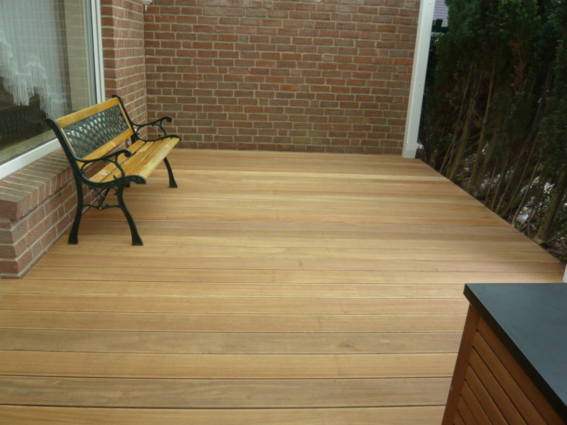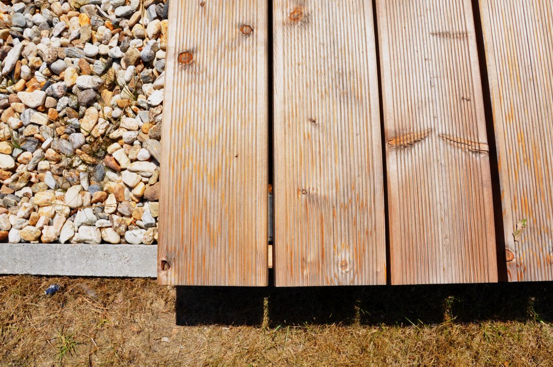 - Optimale Hinterlüftung durch Abstand zwischen Dielen und Lagerholz